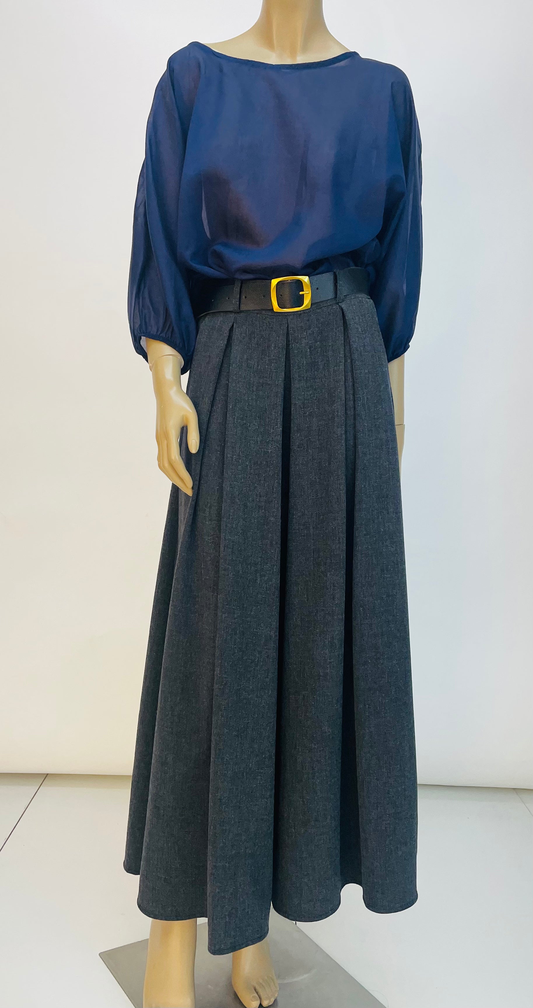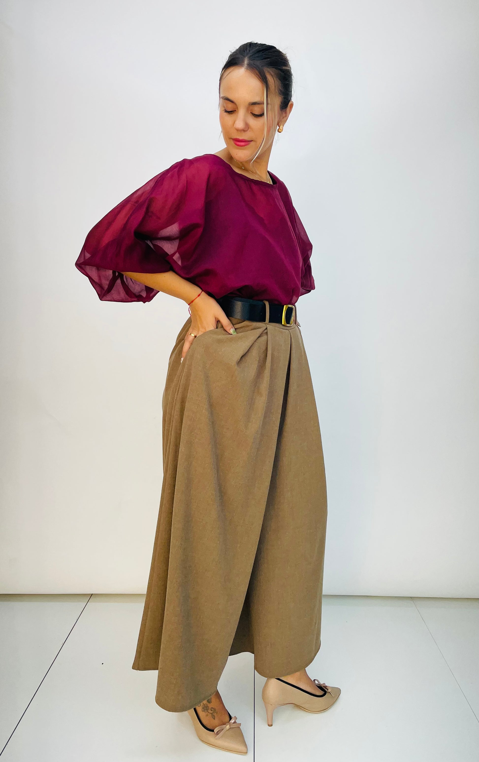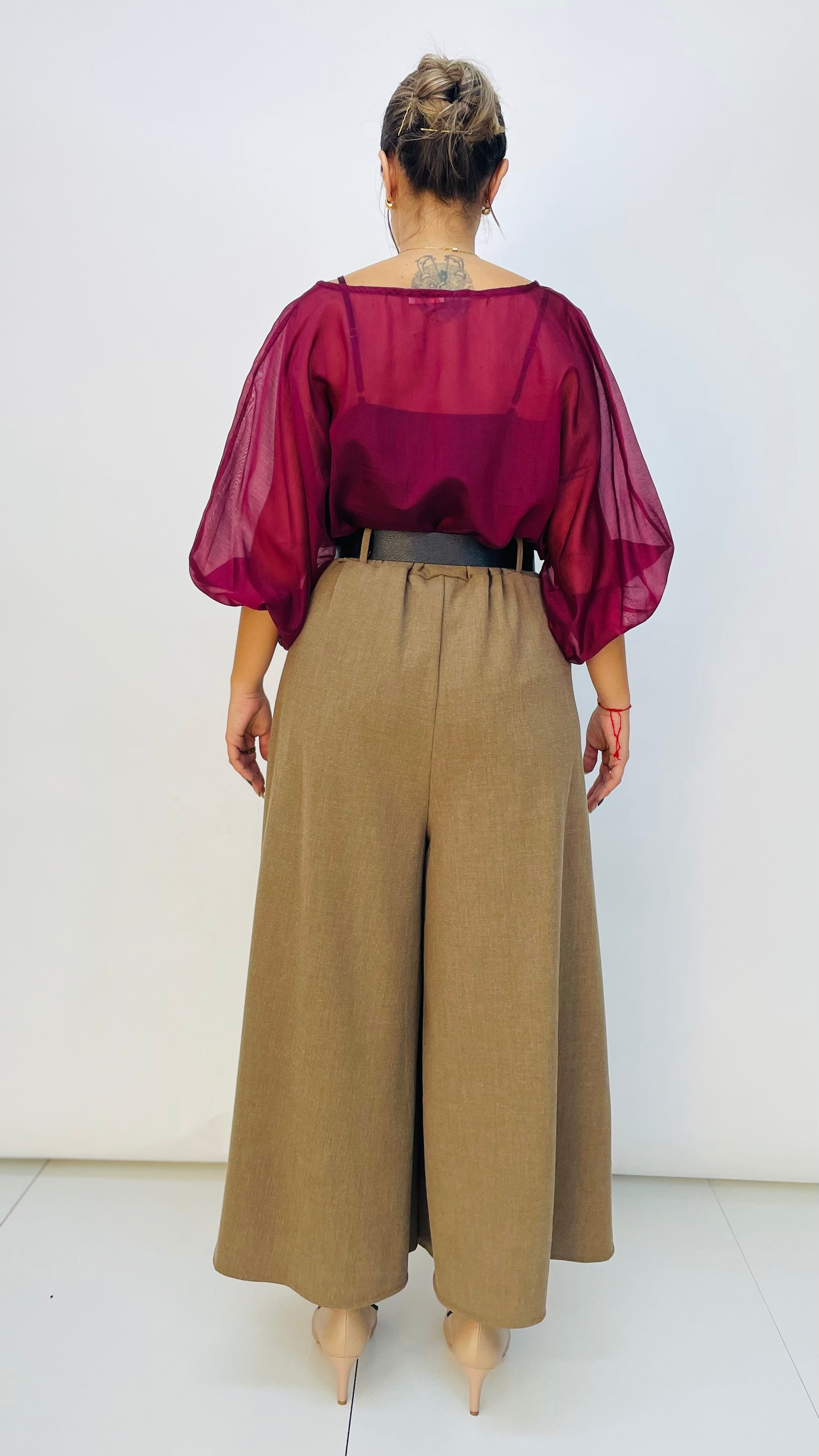 Blusa en chiffón con manga japonesa, puño y cintura elástico, con escote recto.